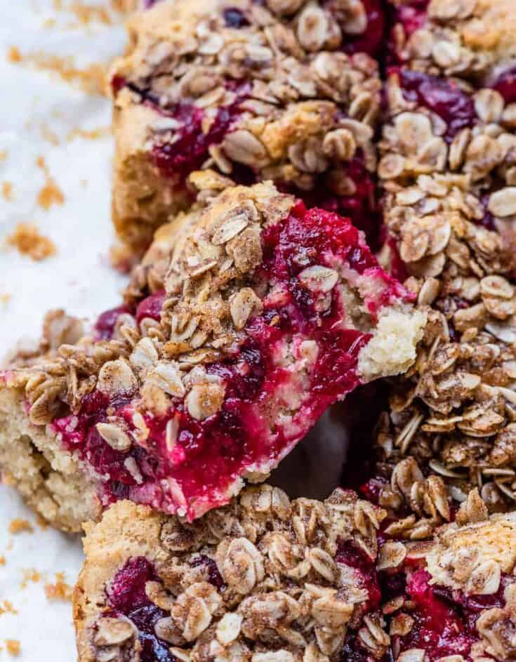 This cranberry coffee cake is made with oat flour, studded with tart cranberries, and topped with crumble. Ready in just 50 minutes!